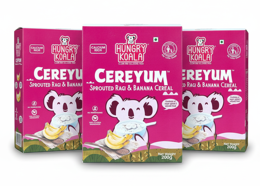 HUNGRY KOALA Cereyum Sprouted Moong & Date Cereal for Kids, 100% Natural, No added Sugar Cereal (200 g, Pack of 3, 6+ Months)Rs. 1,020.00Our Sprouted Moong and Date Cereal contains essential nutrients: Ragi, a rich source of calcium ...