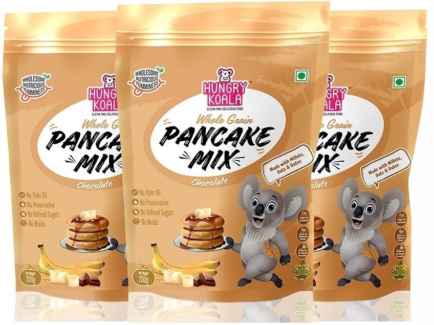 HUNGRY KOALA Wholegrain Vanilla Banana Pancake(Made with Sorghum,Oat,Moongdal,Date & Jaggery) 600 g (Pack of 3)Rs. 660.00PRODUCT DESCRIPTION: Our ‘Wholegrain Vanilla - Banana Pancake is made of wholegrain like millet, ...